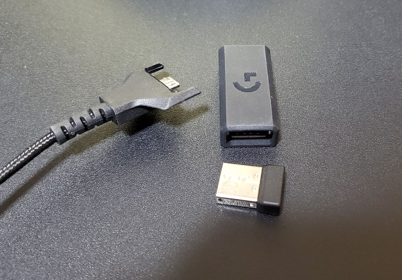 こちらが無線用のドングルと充電や有線として使うためのケーブルです。
